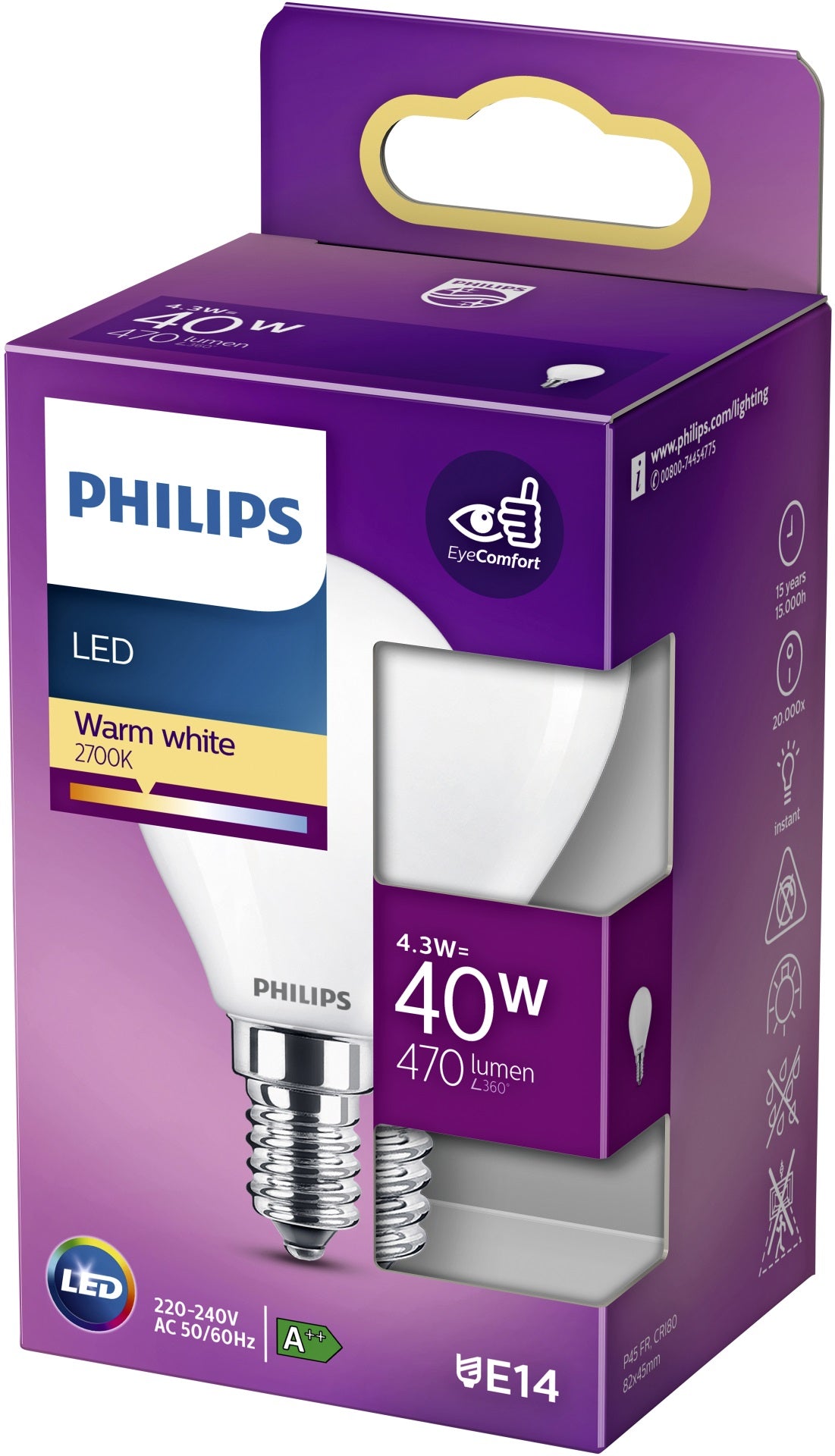 Philips LED E14 Krone 4,3W Glas Classic Frosted -